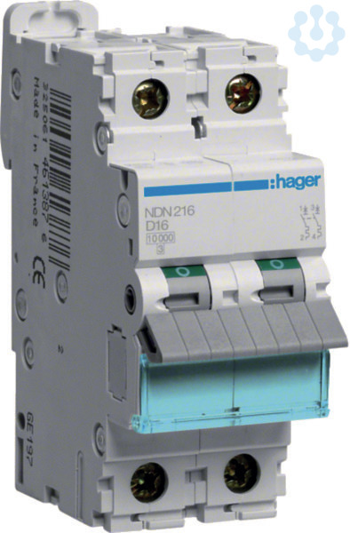 Leitungsschutzschalter 2 polig 10kA/15kA D-16A 2M.Leitungsschutzschalter nach DIN EN 60898-1 (VDE 0641-11) mit zeitverzögertem thermischen Auslöser für Überlastschutz und elektromagnetischer Auslöser für Kurzschlussschutz. Geeignet zum nachträglichen Anbau von Zusatzeinrichtungen. Beschriftungsmöglichkeit direkt am Gerät und Einzelentnahme aus dem Phasenschienenverbund durch Entriegelung der Hutschienenschnellbefestigung.