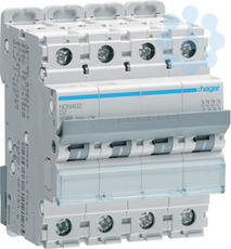 Leitungsschutzschalter 4 polig 10kA/15kA D-2A 4M.Leitungsschutzschalter nach DIN EN 60898-1 (VDE 0641-11) mit zeitverzögertem thermischen Auslöser für Überlastschutz und elektromagnetischer Auslöser für Kurzschlussschutz. Geeignet zum nachträglichen Anbau von Zusatzeinrichtungen. Beschriftungsmöglichkeit direkt am Gerät und Einzelentnahme aus dem Phasenschienenverbund durch Entriegelung der Hutschienenschnellbefestigung.