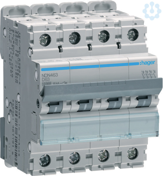 Leitungsschutzschalter 4 polig 10kA/15kA D-63A 4M.Leitungsschutzschalter nach DIN EN 60898-1 (VDE 0641-11) mit zeitverzögertem thermischen Auslöser für Überlastschutz und elektromagnetischer Auslöser für Kurzschlussschutz. Geeignet zum nachträglichen Anbau von Zusatzeinrichtungen. Beschriftungsmöglichkeit direkt am Gerät und Einzelentnahme aus dem Phasenschienenverbund durch Entriegelung der Hutschienenschnellbefestigung.