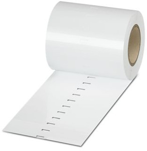 Marker für Klemmen, Rolle, weiß, unbeschriftet, beschriftbar mit: THERMOMARK E.300 (D)/600 (D), THERMOMARK ROLL 2.0, THERMOMARK ROLL, THERMOMARK ROLL X1, THERMOMARK ROLLMASTER 300/600, THERMOMARK X1.2, unperforiert, Montageart: verrasten, verrasten in flacher Schildchennut, für Klemmenbreite: 100 mm, Schriftfeldgröße: 6,35 x 101,5 mm, Anzahl der Einzelschilder: 1000