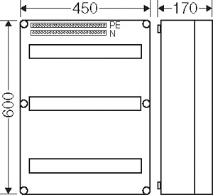 Gehäuse für den Bau von Energie-Schaltgerätekombinationen bis 630 A oder als Einzelgehäuse. Aus hochwertigem Polycarbonat schutzisoliert. Wanddurchführungen mit großen Öffnungen für die elektrische Verbindung der Gehäuse untereinander. Kabeleinführung an allen Gehäusewänden über metrische Vorprägungen oder Anbauflansche. Gehäuse zur Wandbefestigung auch über Außenlaschen oder mit Montageschienen. Automatengehäuse mit 54 Teilungseinheiten zum Einbau von Reiheneinbaugeräten nach DIN 43880. Mit PE- und N-Klemmen für Kupferleiter. N trennbar für unterschiedliche Potenziale. Mit Abdeckstreifen zum Verschließen von nicht benutzten Geräteausschnitten und Beschriftungsstreifen für die Stromkreiskennzeichnung. Transparenter Deckel, Deckelverschlüsse für Handbetätigung.