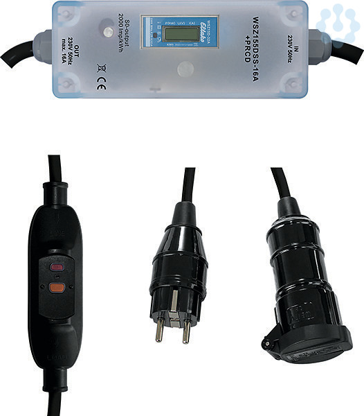 Schutzart Gehäuse: IP68, Schutzart Stecker/Kupplung: IP44, Schutzart PRCD: IP66. Gehäuse-Abmessungen 155 x 60 x 82 mm, Anschlussleitung 1,5 m (incl. Stecker und Kupplung). Genauigkeitsklasse B (1%). Dieser mobile Wechselstromzähler misst die Wirkenergie anhand des zwischen dem Eingang und dem Ausgang fließenden Stromes. Der Eigenverbrauch von nur maximal 0,4 Watt Wirkleistung wird nicht gemessen und nicht angezeigt. Zyklisch wechselt die Anzeige auf dem Display alle 10 Sekunden zwischen der aufgelaufenen Wirkenergie in kWh und dem Momentanverbrauch in kW. Der Anlaufstrom ist 20 mA. Das Display kann nur mit Stromversorgung abgelesen werden. Der Verbrauch ist jedoch nichtflüchtig gespeichert und wird nach einem Stromausfall sofort wieder angezeigt. Die Digitalanzeige hat 7 Stellen. Bis 99999,99 kWh werden zwei Nachkommastellen angezeigt, ab 100000,0 kWh nur noch eine. Der mobile Wechselstromzähler ist mit einem Haltebügel für eine einfache Montage ausgestattet. Dieser kann, falls nicht notwendig, einfach entfernt werden. Der Leistungsbezug wird mit einer 2000-mal je kWh blinkenden LED angezeigt.
