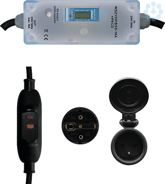 Mobiler Wechselstromzähler mit einem Typ-E-Stecker für Frankreich und Belgien. Mit zusätzlichem Personenschutz-Zwischenschalter PRCD 30 mA. Für Innen- und Außenbereich geeignet. Maximalstrom 16 A. SStand-by-Verlust nur 0,4 Watt. Schutzart Gehäuse: IP68, Schutzart Stecker/Kupplung: IP54, Schutzart PRCD: IP66. Gehäuse-Abmessungen 155 x 60 x 82 mm, Anschlussleitung 1,5 m (incl. Stecker und Kupplung). Genauigkeitsklasse B (1%). Dieser mobile Wechselstromzähler misst die Wirkenergie anhand des zwischen dem Eingang und dem Ausgang fließenden Stromes. Der Eigenverbrauch von nur maximal 0,4 Watt Wirkleistung wird nicht gemessen und nicht angezeigt. Zyklisch wechselt die Anzeige auf dem Display alle 10 Sekunden zwischen der aufgelaufenen Wirkenergie in kWh und dem Momentanverbrauch in kW. Der Anlaufstrom ist 20 mA. Das Display kann nur mit Stromversorgung abgelesen werden. Der Verbrauch ist jedoch nichtflüchtig gespeichert und wird nach einem Stromausfall sofort wieder angezeigt. Die Digitalanzeige hat 7 Stellen. Bis 99999,99 kWh werden zwei Nachkommastellen angezeigt, ab 100000,0 kWh nur noch eine. Der mobile Wechselstromzähler ist mit einem Haltebügel für eine einfache Montage ausgestattet. Dieser kann, falls nicht notwendig, einfach entfernt werden. Der Leistungsbezug wird mit einer 2000-mal je kWh blinkenden LED angezeigt. Der Personenschutz-Zwischenschalter PRCD erkennt Fehlerströme, die z.B. beim Berühren eines fehlerhaften Elektrogerätes auftreten und unterbricht den Strom so schnell, dass lebensgefährliche Unfälle verhindert werden können. Er besitzt zusätzlich eine Unterspannungsauslösung, die bei Ausfall der Netzspannung abschaltet. Mit Funktionsanzeige und Testschaltung.