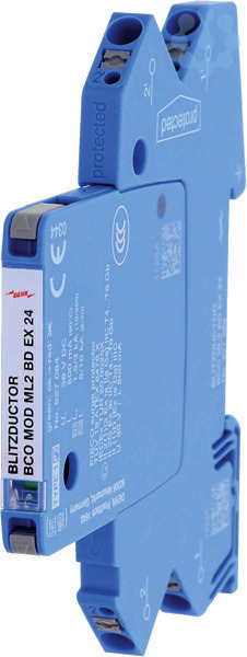 Platzsparender, modularer Überspannungs-Ableiter in 6 mm Baubreite und Push-in Anschlusstechnik mit Statusanzeige zum Schutz von 1 Doppelader eigensicherer Messkreise und Bussysteme. Erfüllt Anforderungen nach FISCO. Isolationsfestigkeit >500 V Ader-Erde. Mit Signaltrennung für Wartungszwecke.