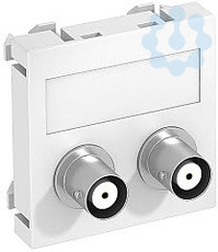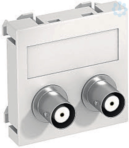 Multimediaträger mit zwei BNC-Anschlussbuchsen, Kabelauslass gerade, mit Beschriftungsfeld, zwei BNC Kupplungen in Ausführung Buchse-Buchse. Trägerplatte mit Rastbefestigung, geeignet für den waagerechten und senkrechten Einbau in die Systemumgebung.