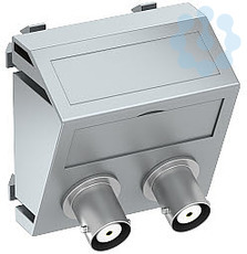 Multimediaträger mit zwei BNC Anschlussbuchsen, Kabelauslass schräg, mit Beschriftungsfeld, zwei BNC Kupplungen in Ausführung Buchse-Buchse. Trägerplatte mit Rastbefestigung, geeignet für den waagerechten und senkrechten Einbau in die Systemumgebung.