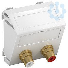 Multimediaträger mit zwei Cinch Anschlussbuchsen für Audio R / L, Kabelauslass schräg, mit Beschriftungsfeld, zwei Cinch Buchsen (RCA) mit Lötanschluss, Farbkodierung rot / weiß. Trägerplatte mit Rastbefestigung, geeignet für den waagerechten und senkrechten Einbau in die Systemumgebung.