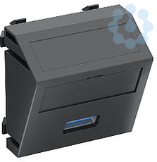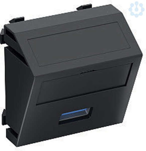 Multimediaträger mit einer USB 3.0-Anschlussbuchse, Kabelauslass schräg, mit Beschriftungsfeld, USB 3.0-Buchse Typ A mit Schraubanschluss. Trägerplatte mit Rastbefestigung, geeignet für den waagerechten und senkrechten Einbau in die Systemumgebung.
