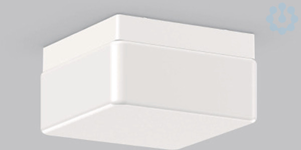 Quadratische Anbauleuchte im klassischen Design. Armatur Kunststoff. Mundgeblasenes Opalglas seidenmatt. Glasbefestigung mit Federsystem. Geeignet für Deckenanbau, Wandanbau. IP 43 Deckenmontage, IP 44 Wandmontage.