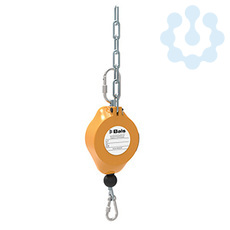 Gehäuse aus extrem schlagfestem Spezialkunststoff mit isolierter Aufhängung, Lastanbringung über sicheren Schraubkarabinerhaken, Bremskraft über seitliche Einstellschraube verstellbar, Eigengewicht: 0,8 kg, Bremskraft: 0,5-6,0 kg, Seilauszug bis 1,5 Meter.