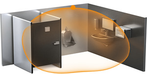 Smarter Überwachungsprofi. Der HF 360-2 aus der neuen Control PRO 2 Serie. Moderne Optik und intelligente 360° HF-Sensortechnik – ideal für Treppenhäuser und WCs mit Kabinen. Per Bluetooth bequem einstell- und vernetzbar. Schnittstellen: COM1, COM2, DALI-2 APC, DALI-2 IPD, KNX, IP und BT IPD (Slave). Montagehöhe bis 4 m. Reichweite: 12 m.