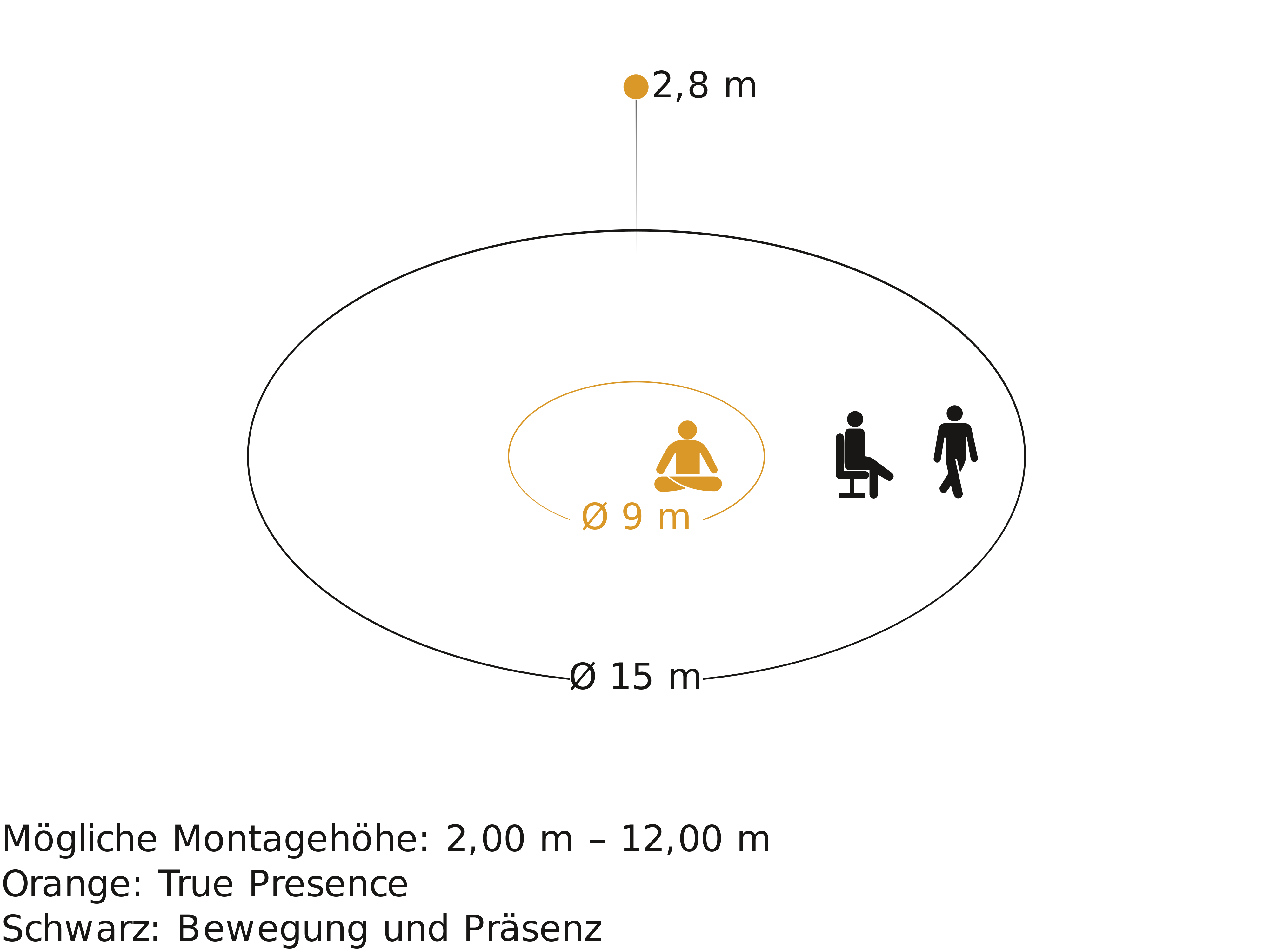 Der erste echte Präsenzmelder der Welt. Keine unnötige Nachlaufzeit mehr – keine unnötigen Stromkosten. 100 Prozent sichere Erfassung durch feinste Hochfrequenzmessung der Umgebung. Auf 64 m2 Fläche erkennt der True Presence Melder zuverlässig die An- bzw. Abwesenheit von Personen – durch körperliche Mikrobewegungen durch menschliche Vitalfunktionen wie das atembedingte Auf und Ab des Brustkorbs bzw. der Schultern. Der neue Standard in der Gebäudeautomation. Einfach steuerbar per App via Bluetooth.