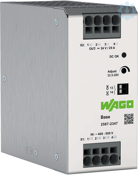 Primär getaktete Stromversorgung; Base; 3-phasig; Ausgangsspannung DC 24 V; Ausgangsstrom 20 A; DC-OK-Kontakt