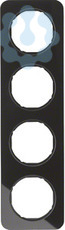 Rahmen 4fach R.1 Glas, schwarz.Abdeckrahmen für senkrechte oder waagerechte Montage zur Verwendung von Abdeckungen und Unterputz Einsätze. Material: Glas und Kunststoff, halogenfrei. Hinweis: Nicht geeignet für Aufputz-Gehäuse.