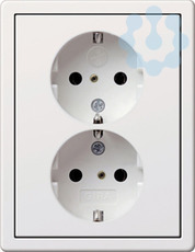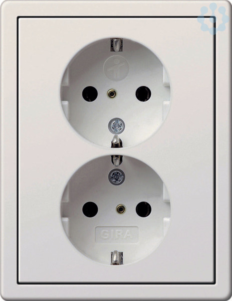 SCHUKO-Doppelsteckdose 16 A 250 V~ mit Shutter, komplett mit Abdeckrahmen für Unterputz-Gerätedose 1fach Reinweiß glänzend Passend in jede handelsübliche Gerätedose. Erhöhter Berührungsschutz (Safety Plus) gemäß DIN VDE 0620-1.