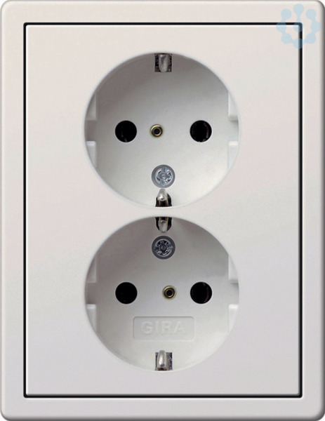 SCHUKO-Doppelsteckdose 16 A 250 V~, komplett mit Abdeckrahmen Reinweiß glänzend Passend in jede handelsübliche Gerätedose. Erhöhter Berührungsschutz (Safety Plus) gemäß DIN VDE 0620-1.