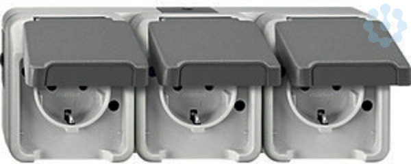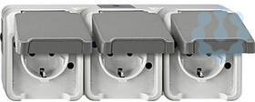 SCHUKO-Dreifach-Steckdose waager. mit BRS lichtgrau AQUASTAR