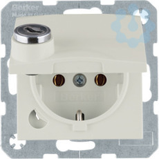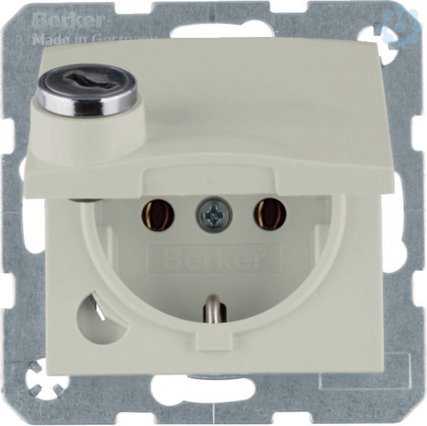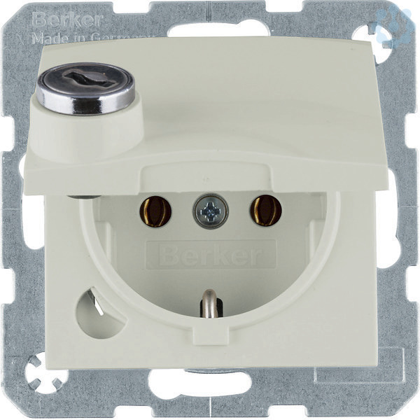 SCHUKO Steckdose m. Schraub-Liftkle mmen,Klappd.,Schloss, S.1,weiß glän
