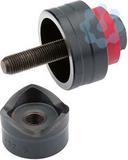 Schraublocher Rund BASIC geeignet für: Stahlblech (ST 37), Kunststoff und Aluminium. Betätigung: Manuell und hydraulisch, Stanzabfall wird 1-Teilig ausgestanzt. Ausführung: Mit Stempel, Matrize und Kugellager-Zugschraube mit (gekapselt) : Nennmaß metrisch 20 mm, Nennmaß PG 13, Loch-ø 20,4 mm, Schraubengröße 9,5x50,0 mm, Vorbohr-ø 10,0 mm, max. Materialstärke 2,0 mm
