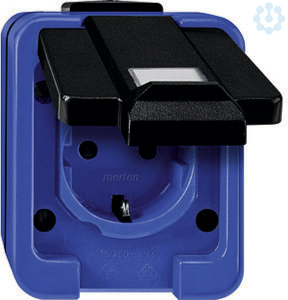 Schuko Steckdose Schriftfeld Schlagfest blau