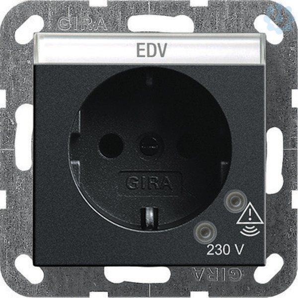 SCHUKO-Steckdose 16 A 250 V~ mit Überspannungsschutz und Beschriftungsfeld Anthrazit - Schützt Elektro- und Elektronikgeräte vor transienten Überspannungen. - Mit akustischem und optischem Signal. - Mit Schraubklemmen. Feinschutz Typ 3 für Elektro- und Elektronikgeräte vor transienten Überspannungen nach EN 61643-11. Einsatz nur in Kombination mit Grobschutz Typ 1 und Mittelschutz Typ 2. Einsatz in TN-, TT-, und IT-Netzen. Beschriftungsschild "EDV" ist beigefügt.