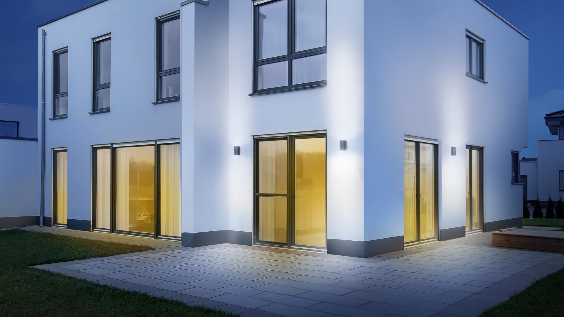 Exzellente Lichtakzente. Als elegantes Up-/Downlight ermöglicht die Sensor-Außenleuchte L 930 S eine wirkungsvolle Akzentbeleuchtung, die Hauswände spektakulär in Szene setzt und ganze Gebäude mit warmweißem Licht (3000 K) optisch aufwertet. Zum synchronen Schalten rund ums Haus können mehrere Leuchten per Kabel verbunden werden. Die 9,3 W-Sensorleuchte aus edlem Aluminium ist mit einem 140° Infrarot-Sensor mit 12 m Reichweite ausgerüstet und bietet eine Nachlaufzeit von 2 oder 15 Minuten. Ein Effektlicht sowie ein Dauerlicht von bis zu 4 Stunden sind optional.