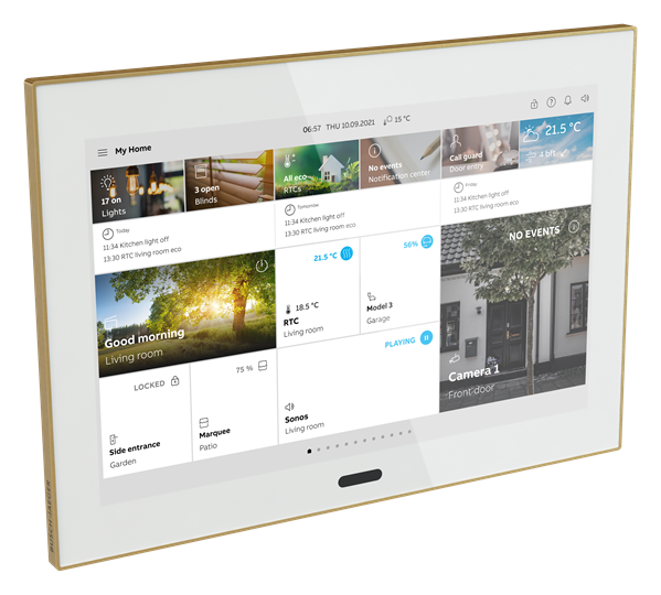 Das SmartTouch 10 bietet die Steuerung und Überwachung des Busch-free@home®- oder KNX-Systems sowie die vollständige Integration von Busch-Welcome®.