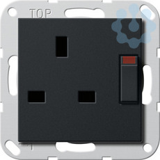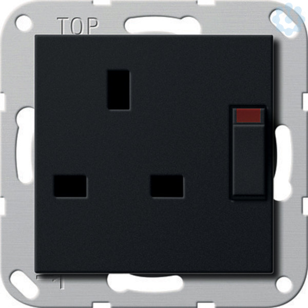 Steckdose British Standard (BS 1363) 13 A 250 V~ geschaltet, mit Shutter Schwarz matt (lackiert) - Mit Schraubklemmen. Nur für Schraubbefestigung. Weitere Funktionen und Varianten auch für die 80er BS-Dose auf Anfrage erhältlich.