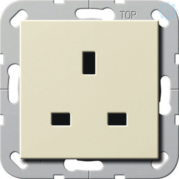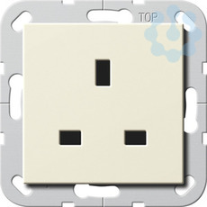 Steckdose British Standard (BS 1363) 13 A 250 V~ mit Shutter Cremeweiß glänzend - Mit Schraubklemmen. Nur für Schraubbefestigung. Weitere Funktionen und Varianten auch für die 80er BS-Dose auf Anfrage erhältlich.