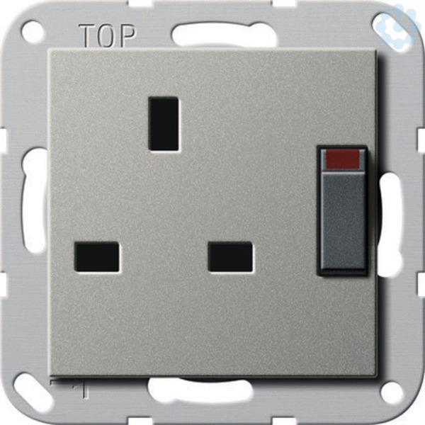 Steckdose British Standard (BS 1363) 13 A 250 V~ geschaltet, mit Shutter Edelstahl (lackiert) - Mit Schraubklemmen. Nur für Schraubbefestigung. Weitere Funktionen und Varianten auch für die 80er BS-Dose auf Anfrage erhältlich.