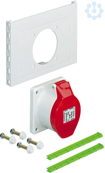 Steckdosenflansch, Schutzart IP44, Schlagfestigkeit IK08, Schutzklasse II, halogenfrei