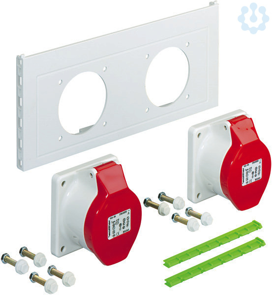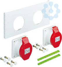 Steckdosenflansch Montageset inkl. Befestigungsmaterial und Steckdosen, 2 x Flanschverbinder (GFV),