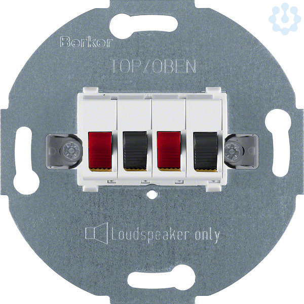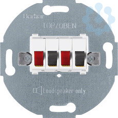 Stereo-Lautsprecher-Anschlussdose Modul-Einsätze polarweiß, matt.Stereo-Lautsprecher-Anschlussdose für Aufnahme von zwei Lautsprecherleitungen.