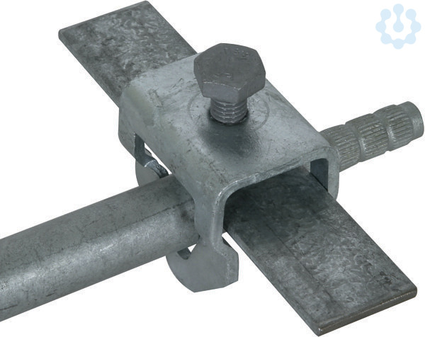 Einschrauben-Anschlussklemme nach DIN EN 62561-1, zum Anschluss von Rundleitern, Flachbändern oder Seilen an Tiefenerdern. Ausführung für Kreuz- und Parallelanschluss geeignet.