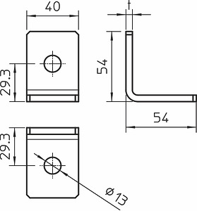 Montagewinkel mit 2 Löchern zur Verbindung von Profilschienen 41 x 41 mm und 41 x 21 mm im Winkel von 90°.