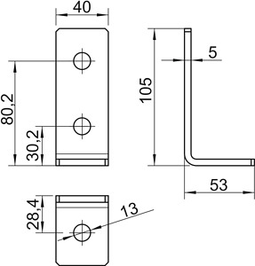 Verbindungswinkel 90°, mit 3 Löcher n 105x53x40x4, A4, 1.4571, 2B