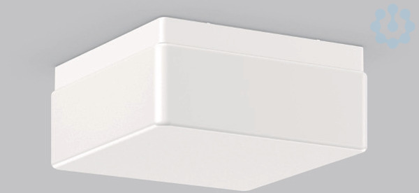 Quadratische Anbauleuchte im klassischen Design. Armatur Kunststoff. Mundgeblasenes Opalglas seidenmatt. Glasbefestigung mit Federsystem. Geeignet für Deckenanbau, Wandanbau. IP 43 Deckenmontage, IP 44 Wandmontage.