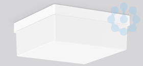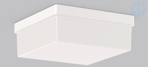 Quadratische Anbauleuchte im klassischen Design. Armatur Kunststoff. Diffusor Kunststoff (Polypropylen) opal seidenmatt. Befestigung des Diffusors mit Federsystem. Geeignet für Deckenanbau, Wandanbau. IP 43 Deckenmontage, IP 44 Wandmontage.