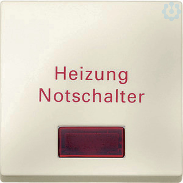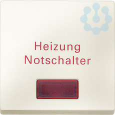 Für Kontrollschalter- und Taster-Einsatz. Mit rotem Kontrollfenster und Aufdruck /Heizung Notschalter/. Zu komplettieren mit Schalter und Taster, 1-fach. Material Duroplast hochkratzfest. Farbe weiß.