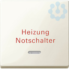 Für Kontrollschalter- und Taster-Einsatz. Mit Kontrollfenster und Kennzeichnung /Heizung Notschalter/. Zu komplettieren mit Schalter und Taster, 1-fach. Material Thermoplast brillant. Farbe weiß glänzend.