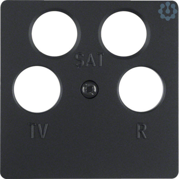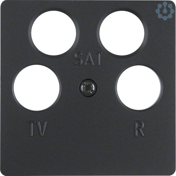 Zentralplatte für Antennendose 4Loch anthrazit matt/samt.Zentralplatte für 4-Loch Antennen-Steckdosen (z.B Ankaro), mit 2 zusätzlichen SAT-Ausgängen (F-Buchsen). Hinweis: Nur mit Zwischenring des Schalterprogramms zu verwenden.