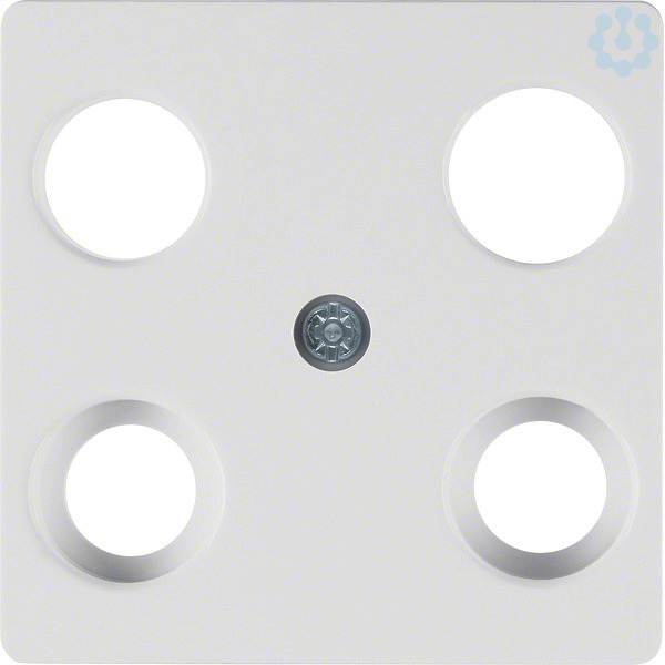 Zentralplatte für Antennendose 4Loch polarweiß, matt/samt.Zentralplatte für 4-Loch Antennen-Steckdosen (Hirschmann), mit 2 zusätzlichen SAT-Ausgängen (F-Buchsen). Hinweis: Nur mit Zwischenring des Schalterprogramms zu verwenden.