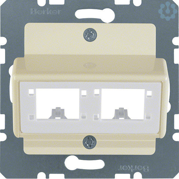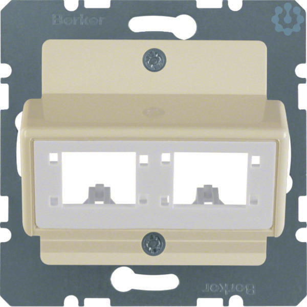 Zentralplatte für 1 oder 2 Einzelmodule Reichle&De-Massari weiß, glänzend.Zentralplatte 2-fach für Mini-Com Module, 1 oder 2 Einzelmodule, mit Tragplatte, 30° Schrägauslass, ohne Spreizkrallen. Hinweis: Nur mit Zwischenring des Schalterprogramms zu verwenden. Beschriftungsfeld einrastbar in passenden Zwischenring.