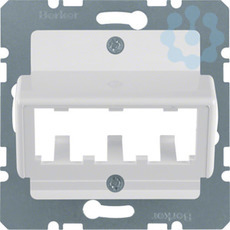 Zentralplatte für 3 MINI-COM Module Zentralplattensystem polarweiß, glänzend.Zentralplatte mit Tragplatte geeignet für Mini-Com Module, 30° Schrägauslass, ohne Spreizkrallen. Hinweis: Nur mit Zwischenring des Schalterprogramms zu verwenden. Beschriftungsfeld einrastbar in passenden Zwischenring.