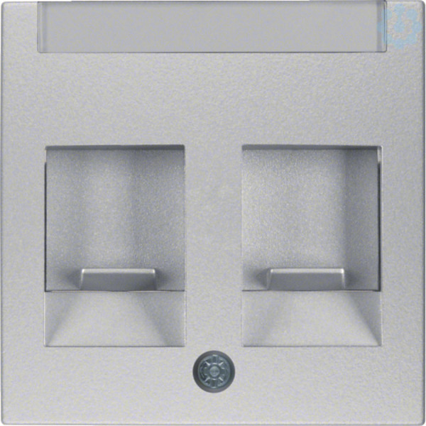 Zentralstück mit Staubschutzschiebern und Beschriftungsfeld S.1/B.3/B.7 alu matt.Zentralstück mit Staubschutzschiebern und Beschriftungsfeld, 2-fach. Für Tragplatten mit farbigen Aufnahmen. Unterputz-Installation, Standardprogramm. Material: Kunststoff, Thermoplast, bruchsicher, halogenfrei.