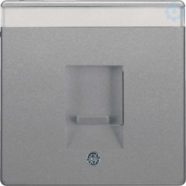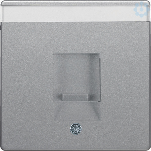 Zentralstück mit Staubschutzschieber und Beschriftungsfeld Q.x alu samt, lack..Zentralstück mit Staubschutzschieber und Beschriftungsfeld für Tragplatten mit farbiger Aufnahme 1-fach. Unterputz-Installation, Flächenprogramm. Material: Kunststoff, Thermoplast, bruchsicher, halogenfrei.