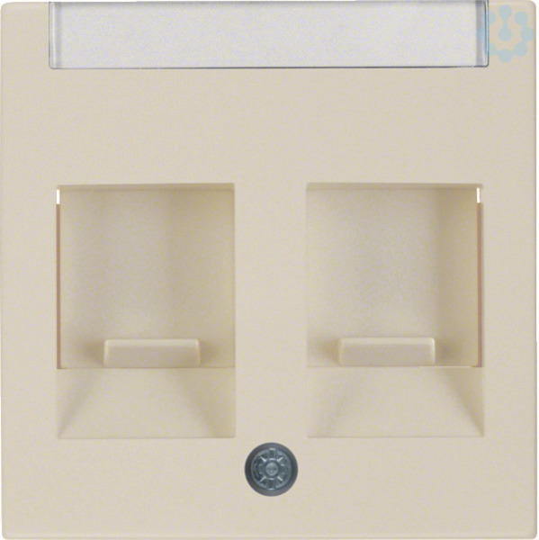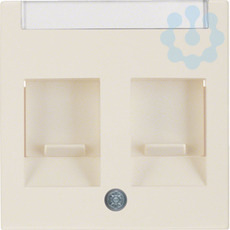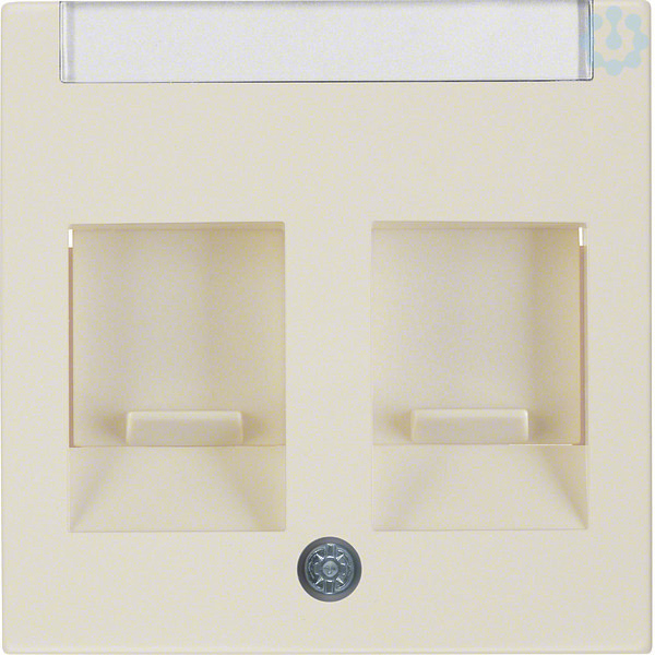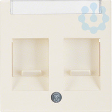 Z.-Stk. mit Staubschutzschiebern und Beschriftungsfeld S.1/B.3/B.7 weiß glänzend.Zentralstück mit Staubschutzschiebern und Beschriftungsfeld, 2-fach. Für Tragplatten mit farbigen Aufnahmen. Unterputz-Installation, Standardprogramm. Material: Kunststoff, Thermoplast, bruchsicher, halogenfrei.